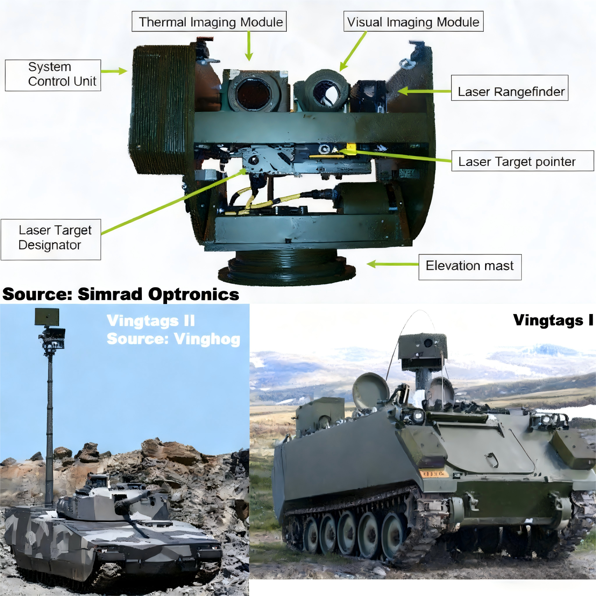 • Installed on the top of the turret or vehicle body, it serves as a laser designator and rangefinder for target locking and weapon guidance.