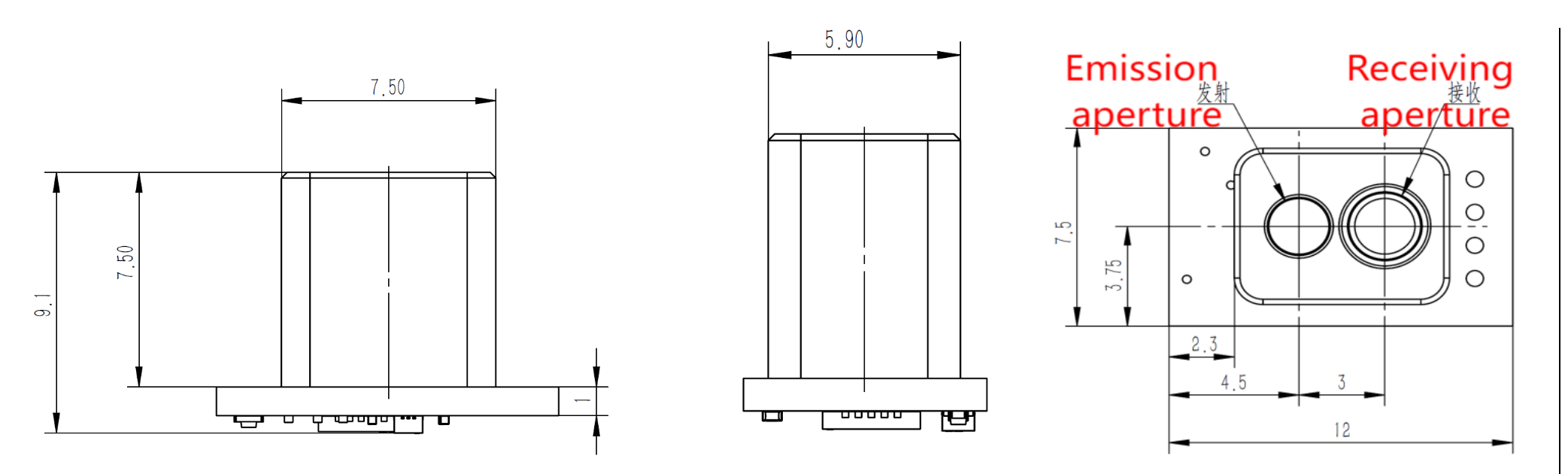 Mechanically, the LRF10VB is extremely small, with typical dimensions around 12 x 7.5 x 9.1mm and an optical layout optimised for single-point ranging, as shown in the optical path and spot-size diagrams. The small footprint and low weight make it easy to embed in camera modules, PTZ heads, compact security sensors, interactive terminals and industrial fixtures where board space is tight but precise distance information is still required.
